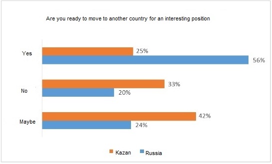 The citizens of Tatarstan as one of such republics confirm the opinion of experts and due to analytics of recruiting company Antal Russia we managed to ascertain this fact. In comparison with the citizens of other regions, the residents of Kazan much more rarely are ready to consider leaving the country for an interesting job abroad. According to analysts, only 25 percent of respondents in Kazan are ready for expatriation for the sake of attractive position, while in general, more than half of Russians surveyed are ready to move. 33 percent definitely are absolutely sure in their desire to build a career in Russia. A total of 5,5 thousands of employees of Russian and international companies were interviewed.