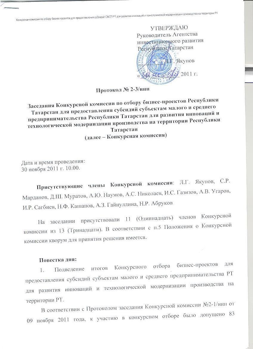 Всем участникам, успешно прошедшим Конкурсный отбор необходимо, в кратчайшие сроки, заполнить, заверить подписью и печатью и принести в Агентство инвестиционного развития РТ, в 2-х экземплярах, договор о предоставлении субсидии и договор поручительства.