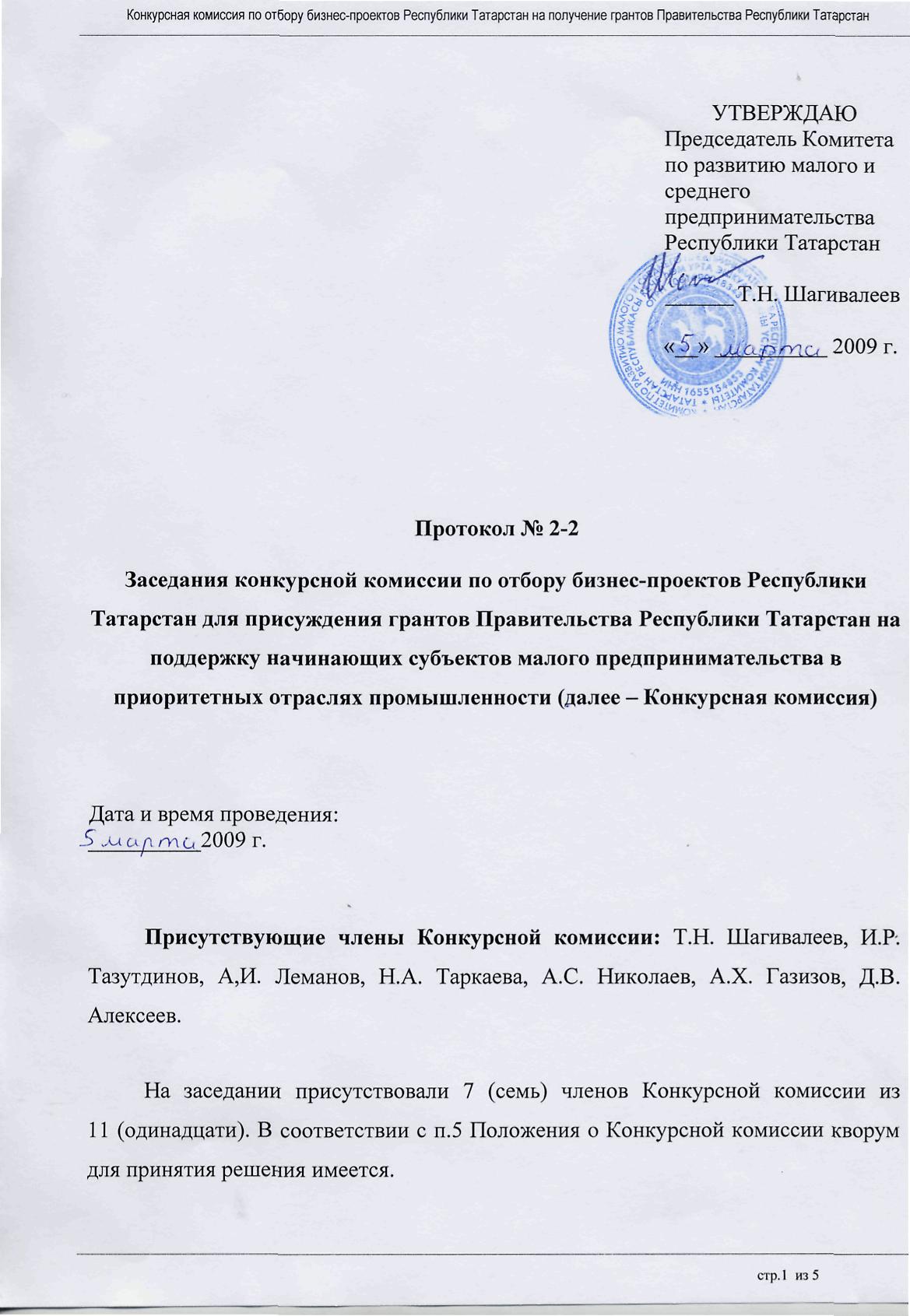 Комитет по развитию малого и среднего предпринимательства Республики Татарстан (далее – Комитет) сообщает, что прошло заседание конкурсной комиссии по отбору бизнес-проектов Республики Татарстан для присуждения грантов Правительства Республики Татарстан на поддержку начинающих субъектов малого предпринимательства в приоритетных отраслях промышленности по подведению итогов конкурсного отбора.
