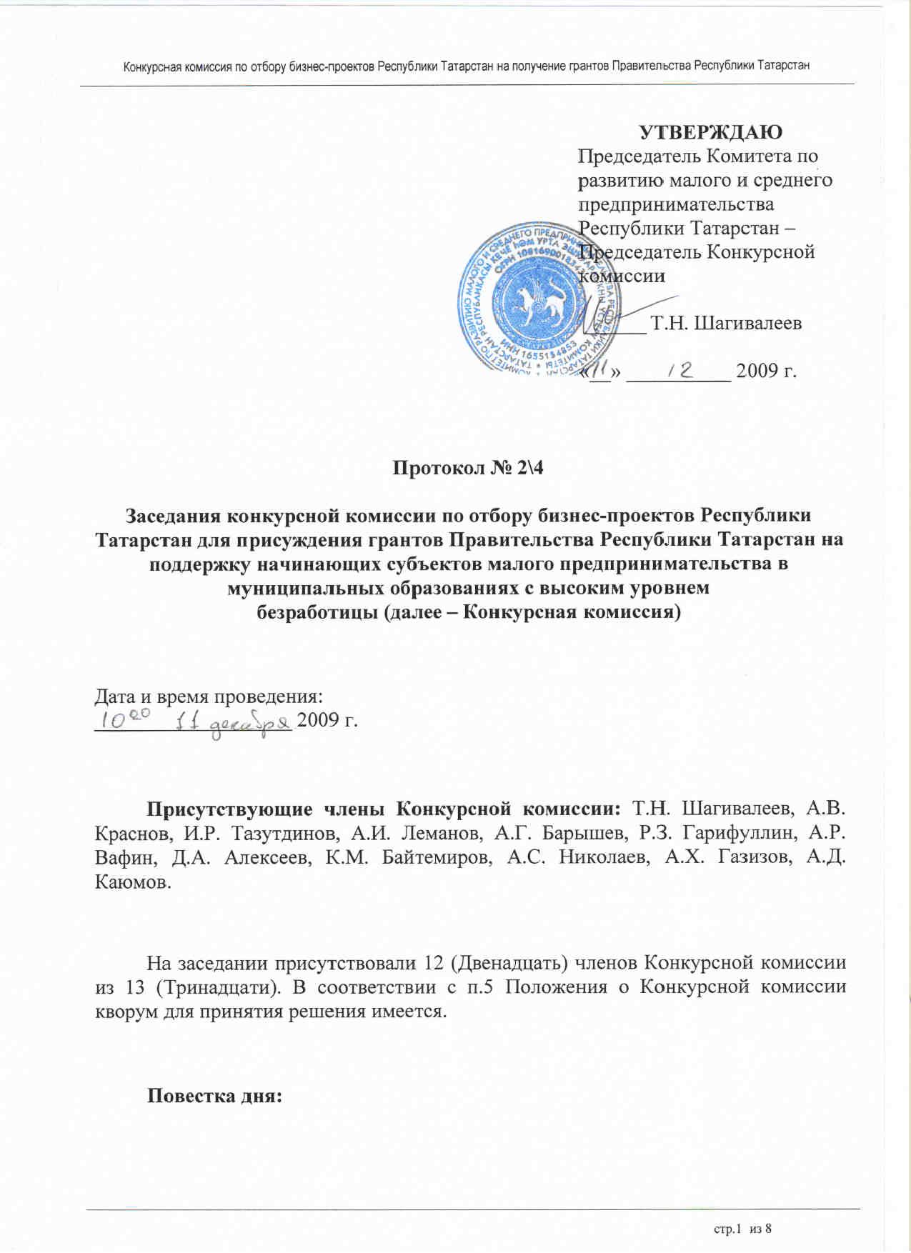 Комитет по развитию малого и среднего предпринимательства Республики Татарстан объявляет о подведении итогов конкурсного отбора бизнес-проектов Республики Татарстан на поддержку начинающих субъектов малого предпринимательства в муниципальных образованиях с высоким уровнем безработицы.