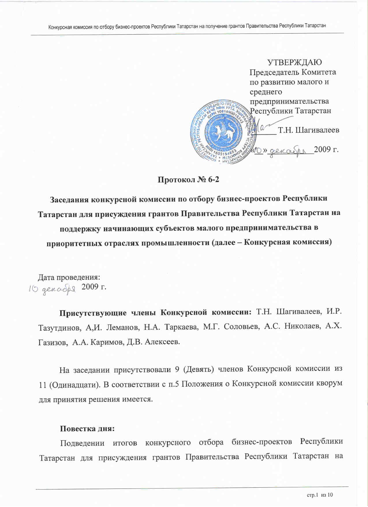 Комитет по развитию малого и среднего предпринимательства Республики Татарстан объявляет о подведении итогов конкурсного отбора бизнес-проектов Республики Татарстан на поддержку начинающих субъектов малого предпринимательства в приоритетных отраслях промышленности.