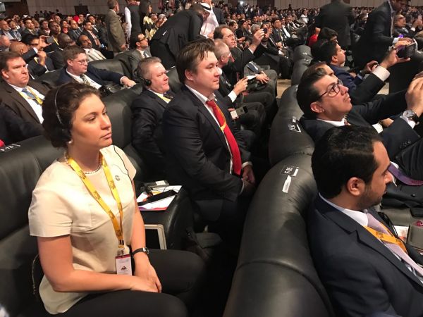 В российскую делегацию, возглавляемую вице-премьером Дмитрием Рогозиным, вошли высокопоставленные чиновники Минэкономики, Минпромторга, МЧС, топ-менеджеры более десяти компаний, включая "Росатом", "Роскосмос", "Ростех", НОВАТЭК, "Роснефть", "Вертолеты России", СИБУР, "Швабе", а также представители российских регионов.