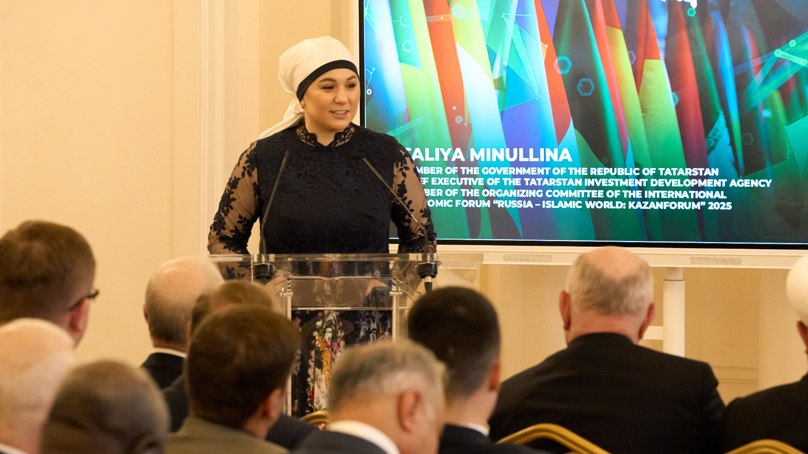 Талия Миңнуллина: «Бүген "Россия – Ислам дөньясы: KazanForum" мәйданчыгы Россия төбәкләренең ИХО илләре белән аралашу өчен иң төп платформа булды, алар 57. Һәм аларның саны буенча без бүгенге көндә форумда 87 илнең катнашуын күрәбез, ягъни Россия белән ислам илләренең хезмәттәшлеге гомумән башка глобаль бергәлекне дә борчый. Делегацияләрне ничек формалаштырабыз, һәр илгә адреслы үз соравыбызны формалаштырабыз, без нәрсә экспортларга/импортларга телибез, нинди уртак проектларны, инициативаларны гамәлгә ашырырга, белем бирү алмашуларын башкарырга, туристик маршрутлар салырга һәм башкалар мөһим. Бу сорауларның күбесе бүген узган очрашулар кысаларында төшерелә. Бу безнең барыбыз бергә очрашсын, сәгатьләрне тагын бер кат чагыштырсын, вип-кунакларны расласын, бизнес-инициативалар турында сөйләшсеннәр өчен бик яхшы ярдәм, чөнки безнең бик күп эшлекле берләшмәләребез бар: Сәүдә-сәнәгать палаталары, «Опора России», «Эшлекле Россия» һәм башкалар. Алар бит үз чараларын әзерлиләр һәм моның өчен яхшы фактура кирәк. Шуңа күрә мондый очрашуны бәяләү авыр, бу бик мөһим мәсьәлә һәм безгә алга таба бу юнәлештә хәрәкәт итәргә кирәк!»