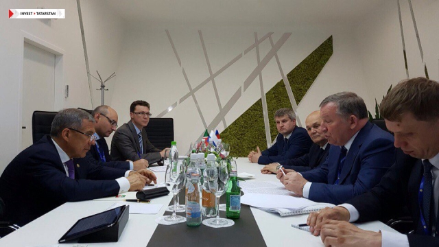Татарстан Президенты Рөстәм Миңнеханов Татарстанның инвестицион үсеш агентлыгы җитәкчесе Талия Миңнуллина катнашуы белән Алтай крае Губернаторы Александр Карлин белән Петербург халыкара икътисади форумында очрашу уздырды.